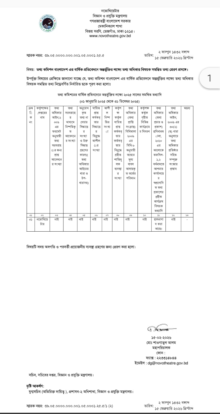 * তথ্য কমিশনের বার্ষিক প্রতিবেদনে অন্তর্ভূক্তির লক্ষ্যে ২০২৫ সালের সমন্বিত তথ্যাদি